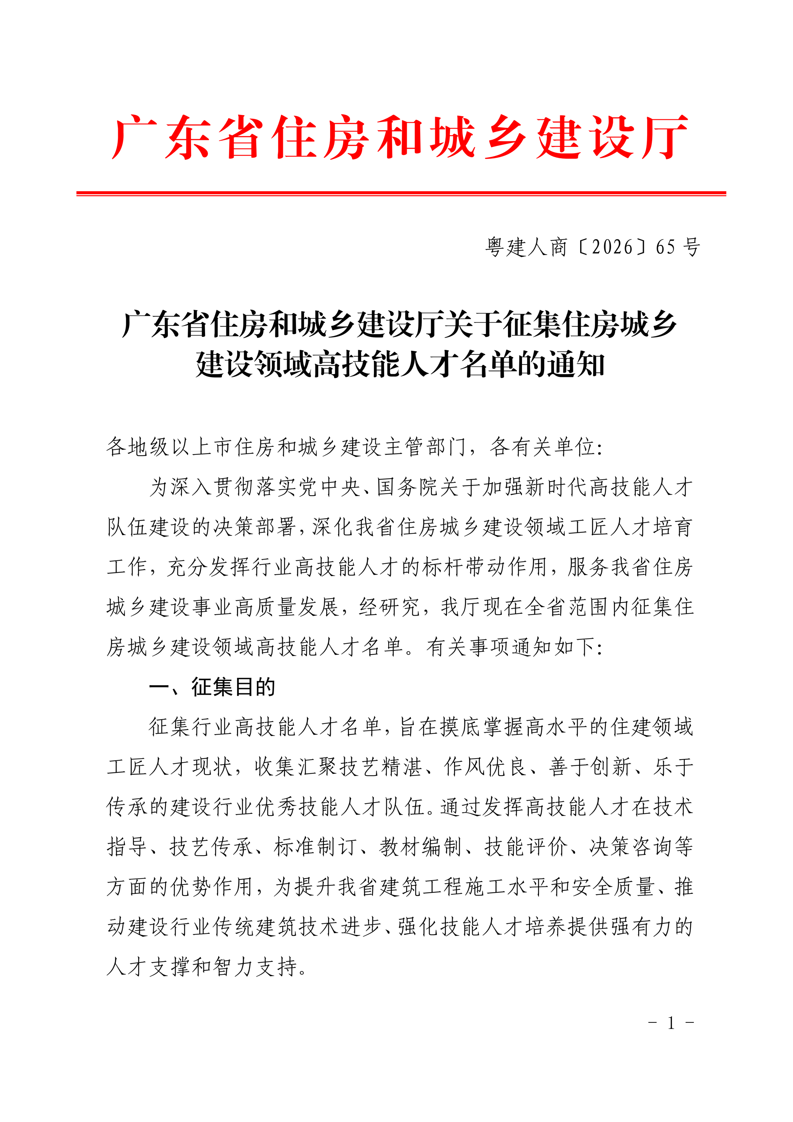 广东省住房和城乡建设厅关于征集住房城乡建设领域高技能人才名单的通知.pdf
